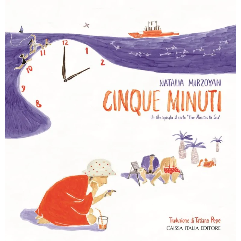 Cinque minuti della casa editrice Caissa Italia, è un albo illustrato per i bambini dai 5 anni che racconta come il tempo venga percepito in modo diverso nei bambini e in età più avanzata, partendo dal sentimento di frustrazione di una bambina la cui madre impedisce di fare il bagno per 5 minuti.