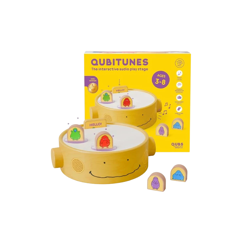 La Qubitunes, Console interattiva di Qubs offre un'esperienza educativa unica ai bambini. Con diverse modalità di gioco e strumenti musicali integrati, i piccoli possono esplorare suoni, ritmi e combinazioni musicali, sviluppando competenze cognitive e creative in modo divertente. I bambini devono semplicemente inserire una cartuccia, posizionare i blocchi di legno sul palco e iniziare la propria avventura audio immaginativa. Spostando i blocchi sul palco interattivo potranno creare infinite avventure audio. La console è progettata per essere resistente, sicura e facilmente trasportabile.