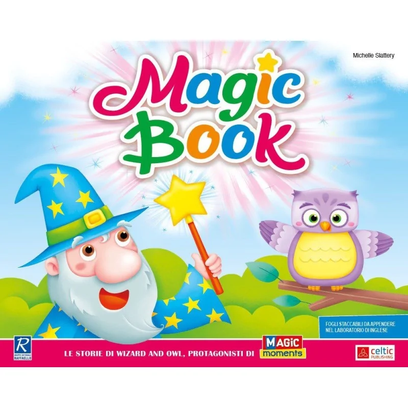 Magic Book fa parte della collana dedicata all’inglese e presenta le storie di Wizard e Owl, protagonisti di Magic Moments. Il volume è concepito con immagini staccabili, sequenze visive e supporto audio per ascoltare le storie tramite CD allegato. Le illustrazioni guidano il racconto visivo mentre i bambini possono riassemblare le immagini in ordine corretto o fissarle a parete per costruire la narrazione